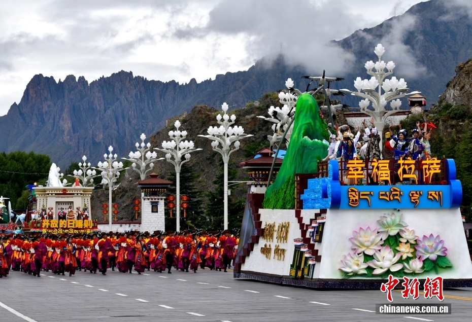 8月21日,西藏自治區(qū)成立60周年慶祝大會在拉薩布達(dá)拉宮廣場舉行。圖為慶祝大會舉行盛大的群眾游行。中新社記者 李林 攝