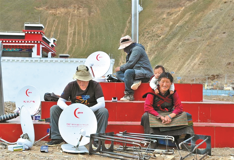 圖為在定日縣措果鄉(xiāng)野江村,工作人員為群眾安裝廣播電視直播衛(wèi)星“戶(hù)戶(hù)通”設(shè)備。記者 旦增嘎瓦 攝