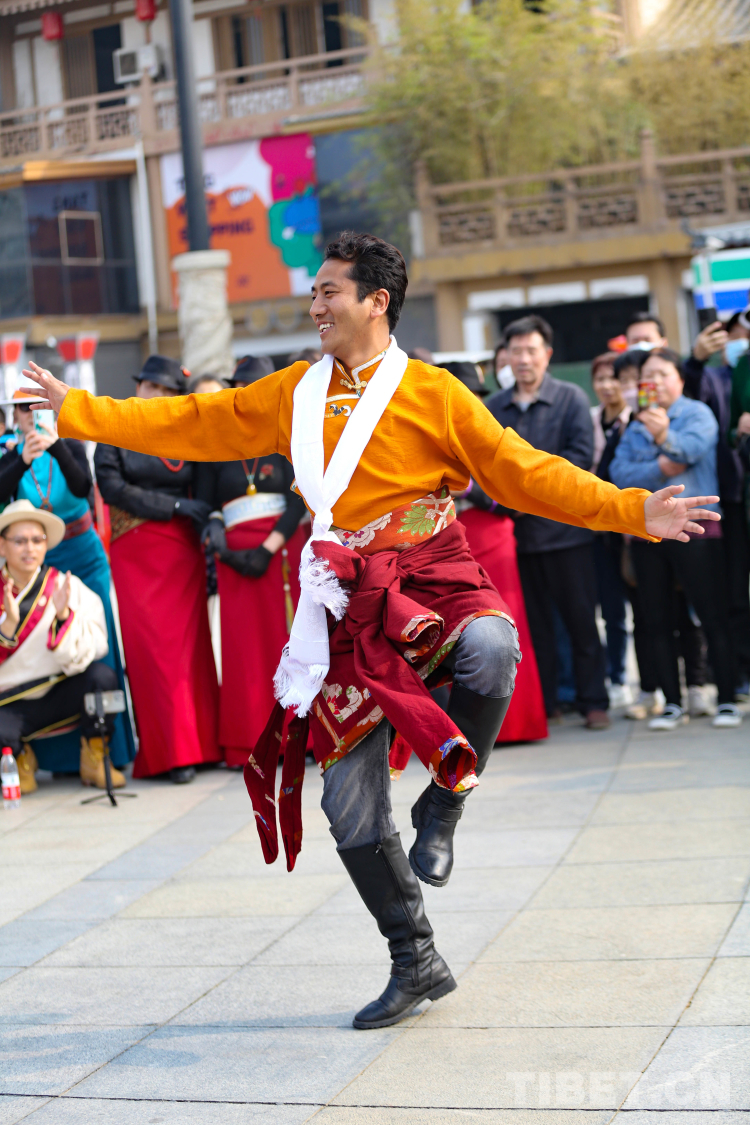 圖為大唐西市活動現(xiàn)場 多杰尼瑪正在領(lǐng)舞 攝影:呂靜