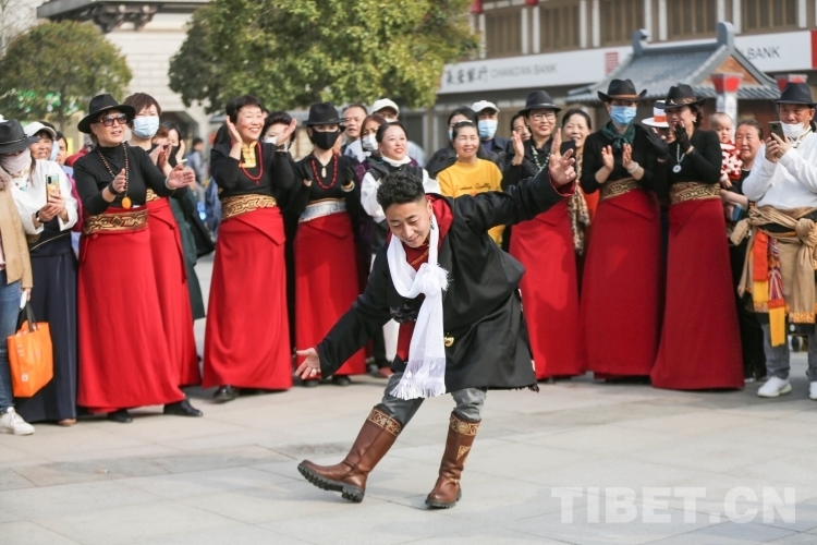 中國西藏網(wǎng)訊 3月21日,由新的社會階層人士服務(wù)團三分團主辦、北京藏地神韻非物質(zhì)文化傳播發(fā)展公司承辦的傳統(tǒng)藏舞公益推廣活動在西安舉辦。多位藏舞傳承人與藏舞愛好者齊聚西安大唐西市進行公益推廣交流。鍋莊、伊舞,《歡迎你們到來》《舞動青春年華》《吉祥的哈達》……一曲接著一曲,舞出了藏族舞蹈的無限魅力?。ㄖ袊鞑鼐W(wǎng) 記者/呂靜 姚浩然)